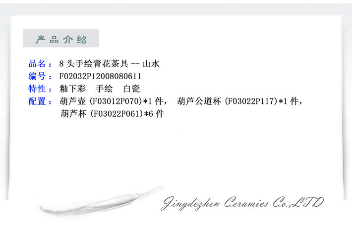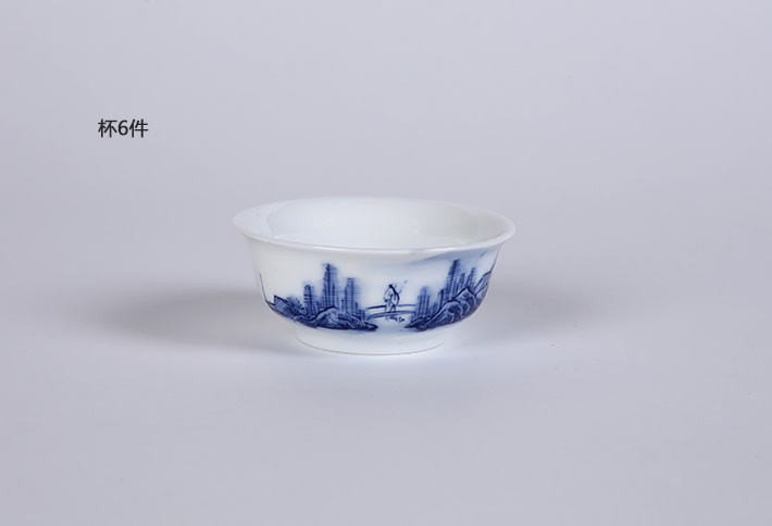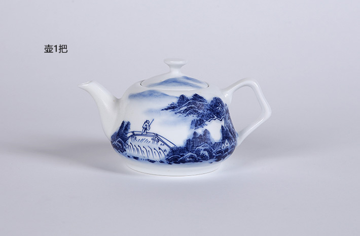 8头手绘青花茶具--山水