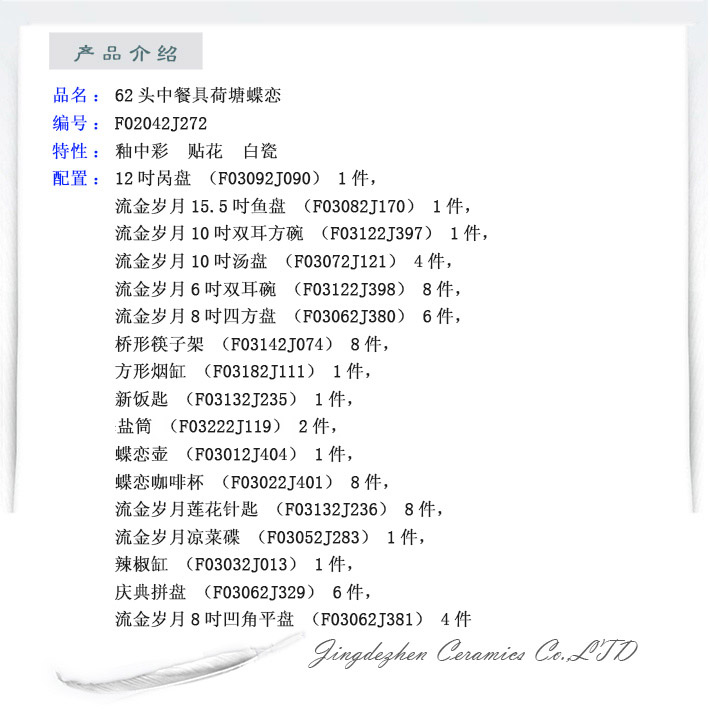 62头中餐具荷塘蝶恋