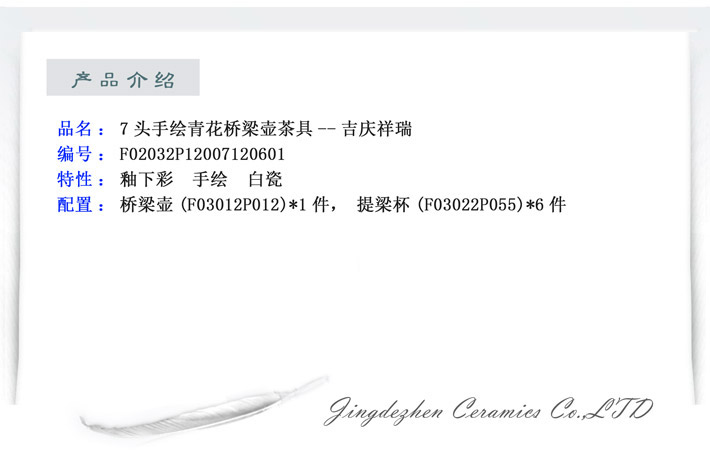 7头手绘桥梁壶茶具吉庆祥瑞